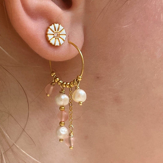 Nynne Øreringe Rosa Kvarts Forgyldt