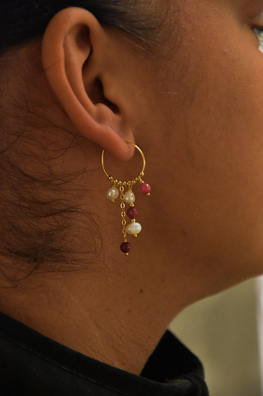Nynne Øreringe Rød Jadesten Forgyldt