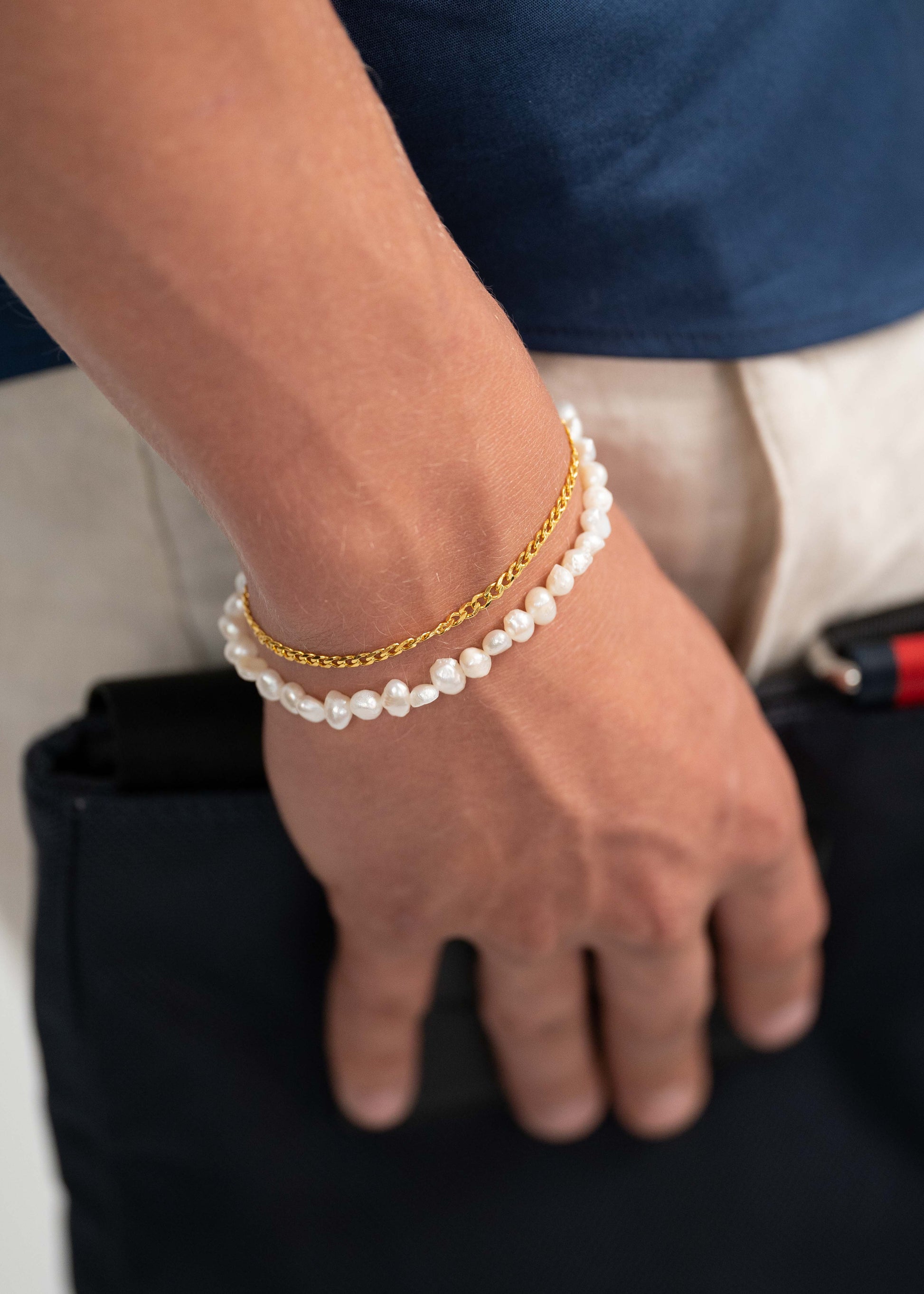 Mads Emil Armkæden er en unik kæde med ferskvandsperler i 4-5 mm. Denne kæde er et statement i sig selv, men styles også gerne med Julius armkæden!